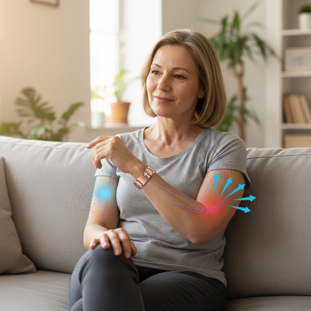 Copper is believed to have natural anti-inflammatory properties that may help alleviate symptoms of arthritis and joint pain, while the combination of copper and magnetism can improve circulation and attract iron in the blood, leading to stronger blood flow and increased oxygen to tissues. While wearing copper jewelry, your skin may absorb tiny particles of copper - an essential mineral needed for building bone, connective tissue, and supporting immune function. Many report feeling relief from daily aches and improved mobility.